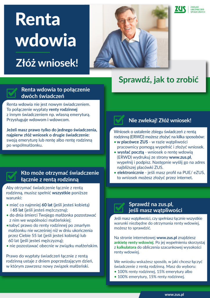 od 1 stycznia br. Zakład Ubezpieczeń Społecznych prowadzi kampanię informacyjną dotyczącą zbiegu świadczeń z rentą rodzinną (tzw. renta wdowia).